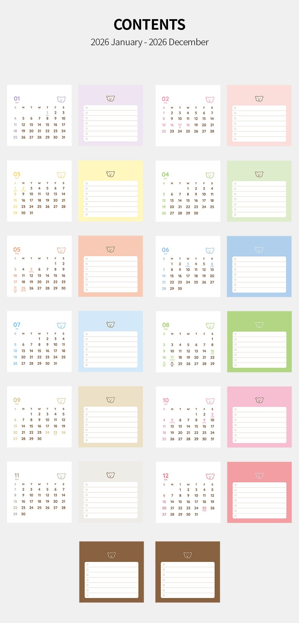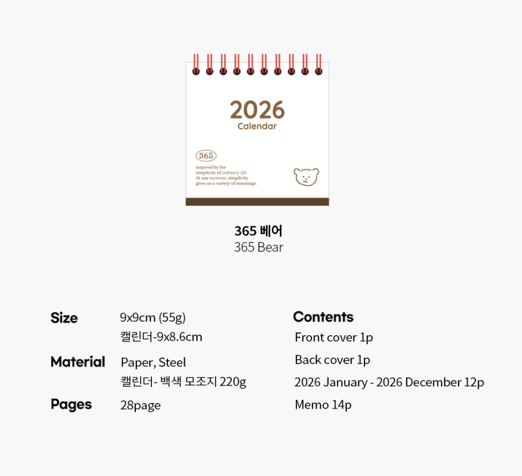 Keep your year organized in the cutest way with the Brunch Brother 2026 Mini Desk Calendar. Compact and easy to place anywhere, this mini calendar adds a soft, charming touch to your workspace without taking up room. Each month features clean, simple layouts accented with Brunch Brother’s signature character illustrations for a delightful pop of personality. The sturdy tent-style stand makes it perfect for desks, nightstands, shelves, or even small office corners. Functional, adorable, and effortlessly minimal—it's the perfect everyday companion for planning your 2026.