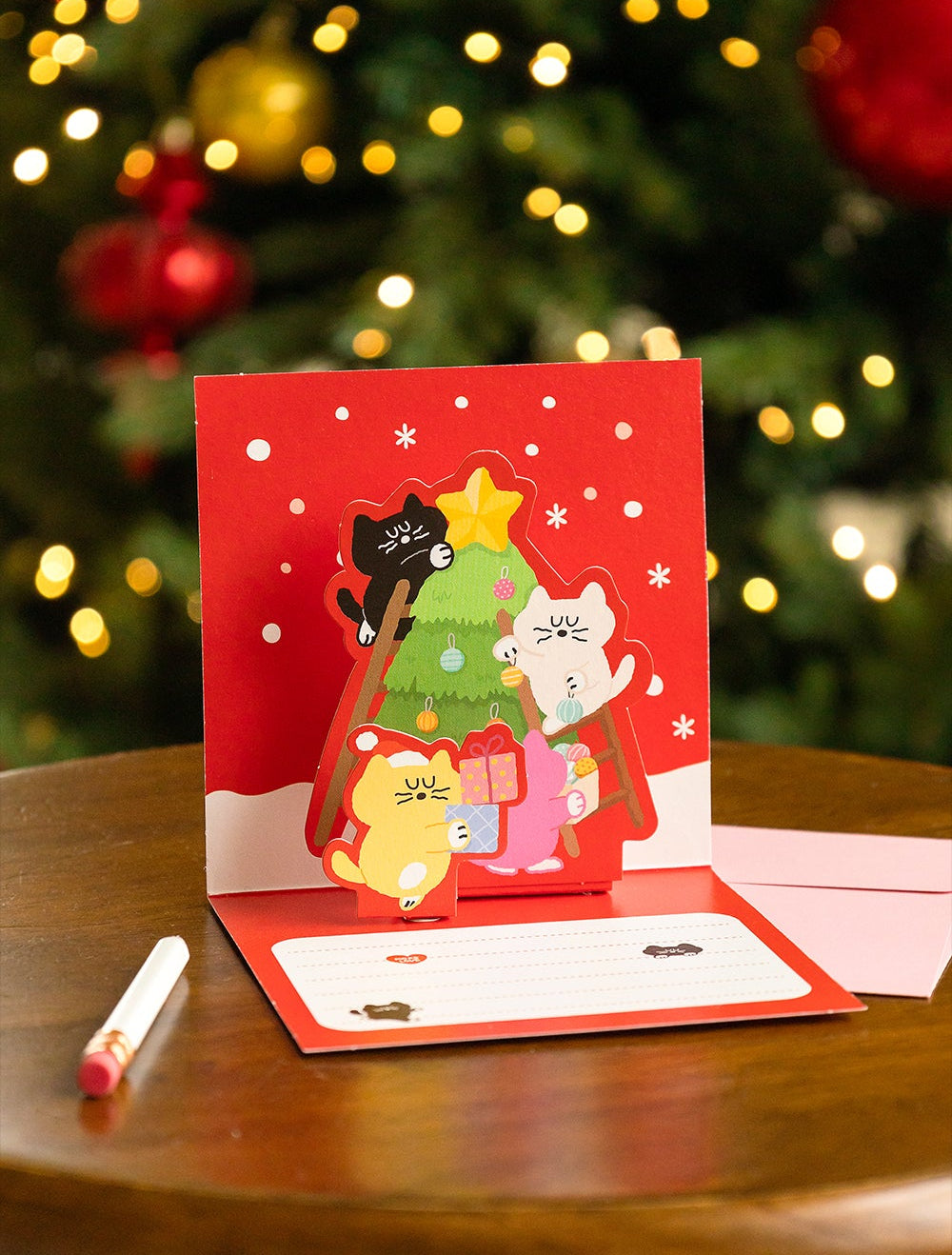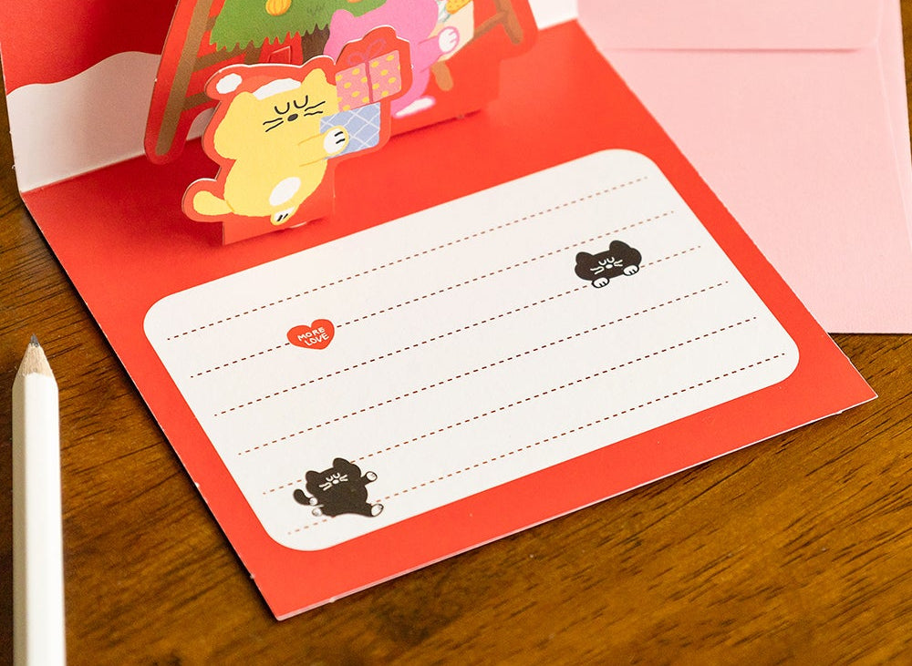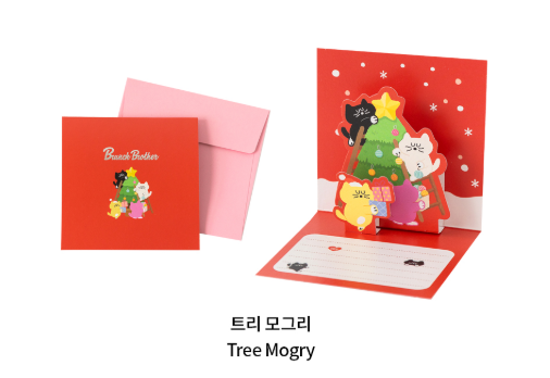 Bring instant holiday cheer with the Tree Mogry Pop-Up Card. When opened, a charming Mogry character pops out from a festive Christmas tree scene, creating a delightful 3D surprise. Bright, playful, and full of personality, this card is perfect for spreading warm wishes during the holidays or adding a cute twist to any seasonal message.
