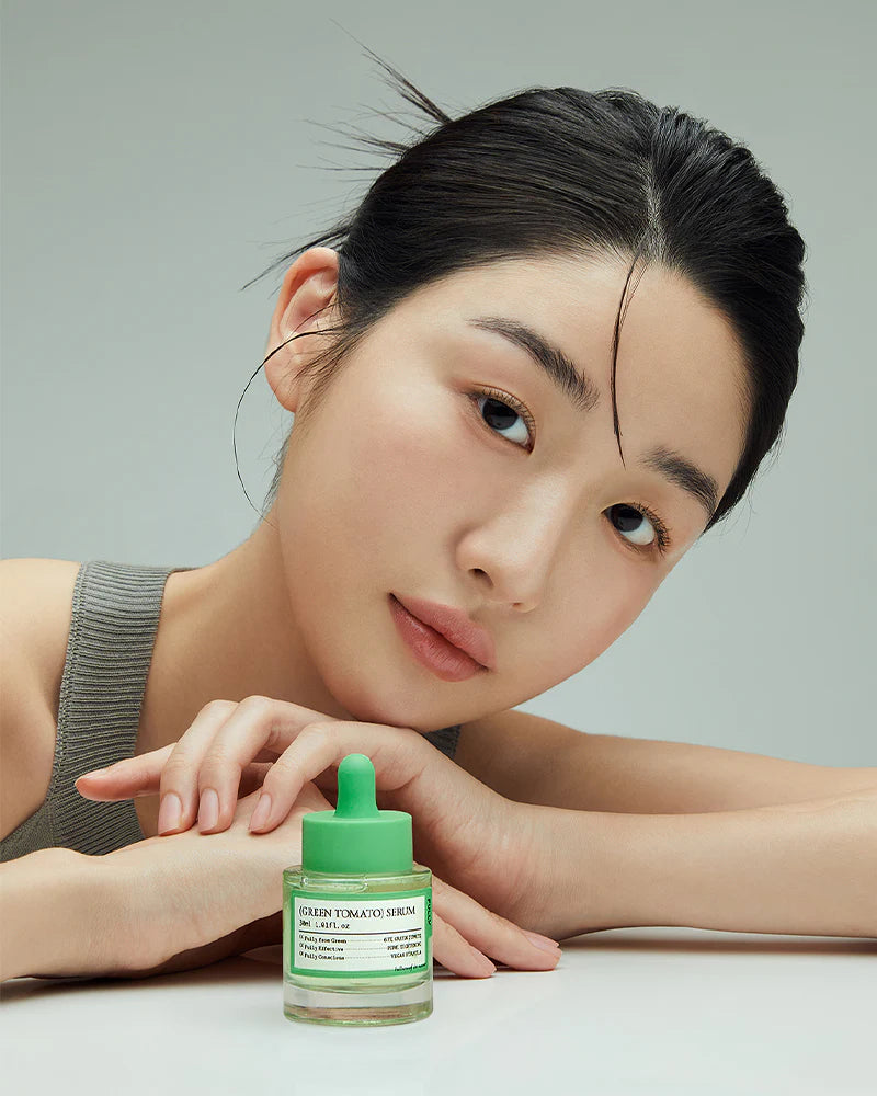 A high-performance serum powered by 67% green tomato extract, formulated to visibly tighten pores, smooth texture and boost firmness for a radiant, refined complexion.
