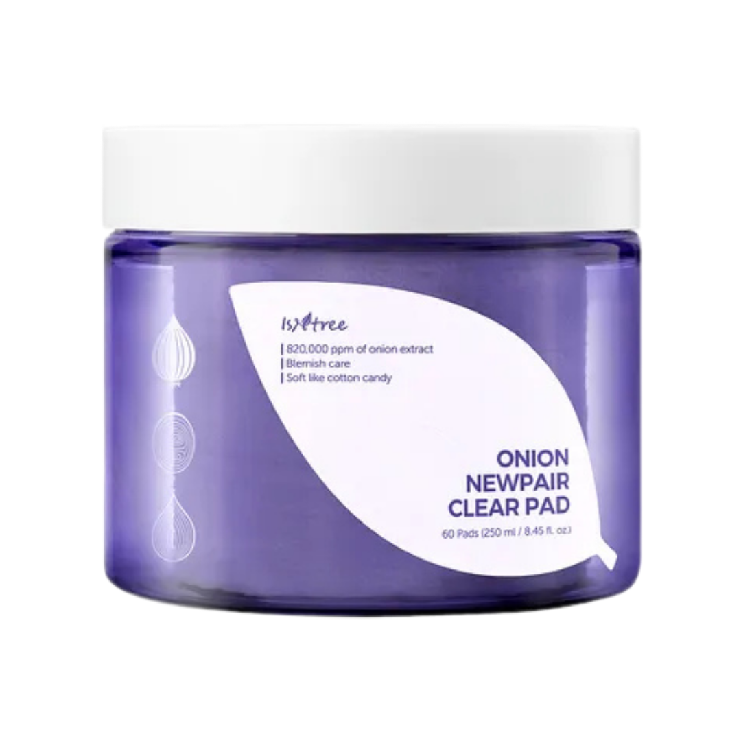 Introducing the ISNTREE Onion Newpair Clear Pad, designed to effectively clear blemishes and calm skin inflammation. Each pad is infused with nourishing ingredients like onion bulb extract and niacinamide, targeting acne scars and brightening dark spots and hyperpigmentation. With 60 pads in a pack, these essentials are drenched in a hydrating essence containing three types of hyaluronic acid and beta-glucan.