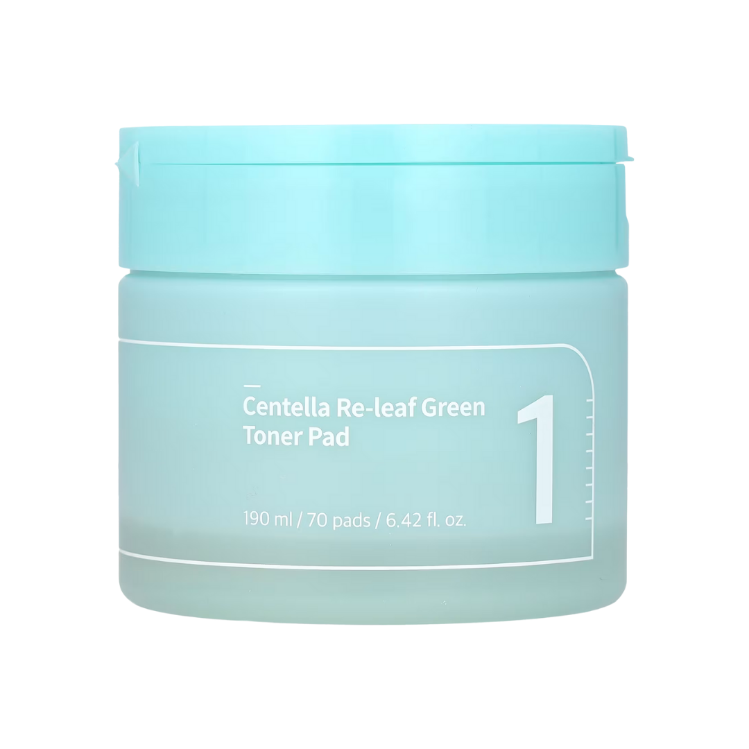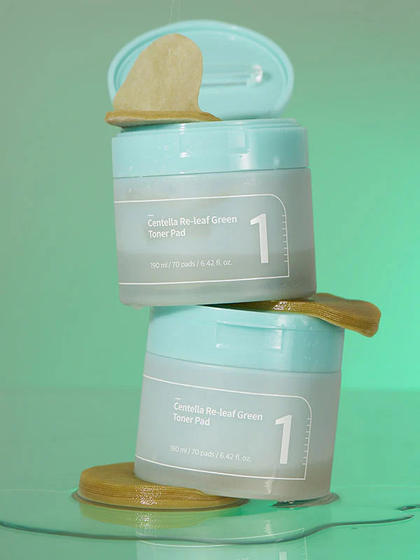 Numbuzin No.1 Re-Leaf Green Toner Pad features a double-sided design: one side crafted from real ground cica for deep soothing, and the other from bamboo for instant hydration. Perfect for heated, irritated, sensitive, and acne-prone skin.