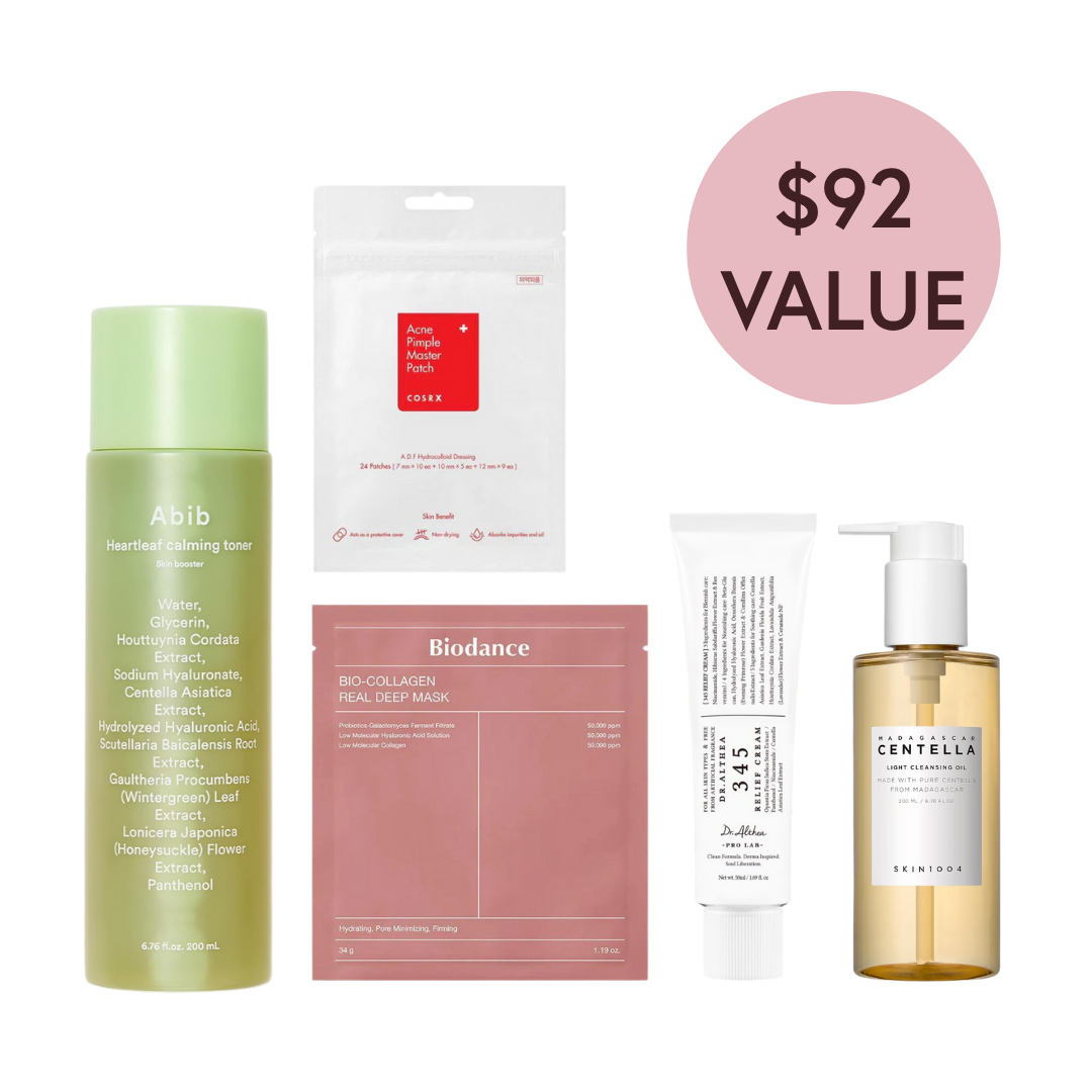 Soothe, cleanse, and restore balance with this curated 5-step routine featuring Korea’s most-loved essentials. Designed to calm irritation, support your skin barrier, and leave your complexion hydrated and radiant — all at nearly half the price.